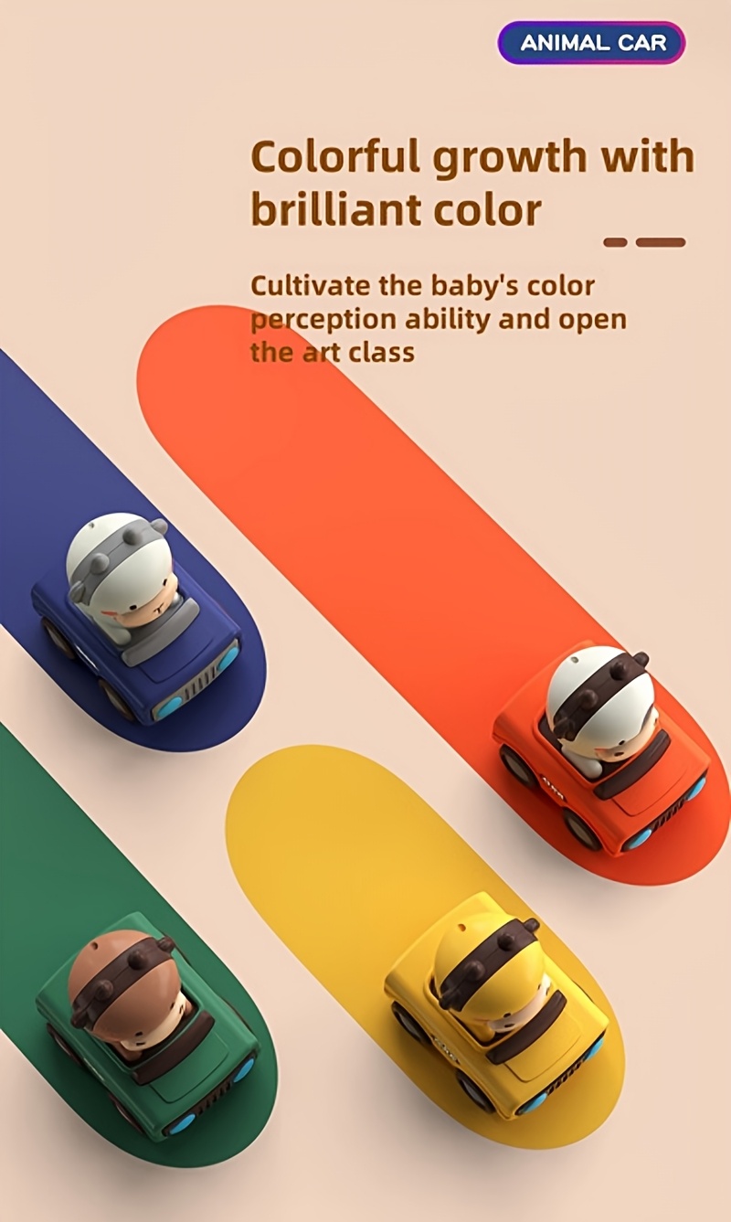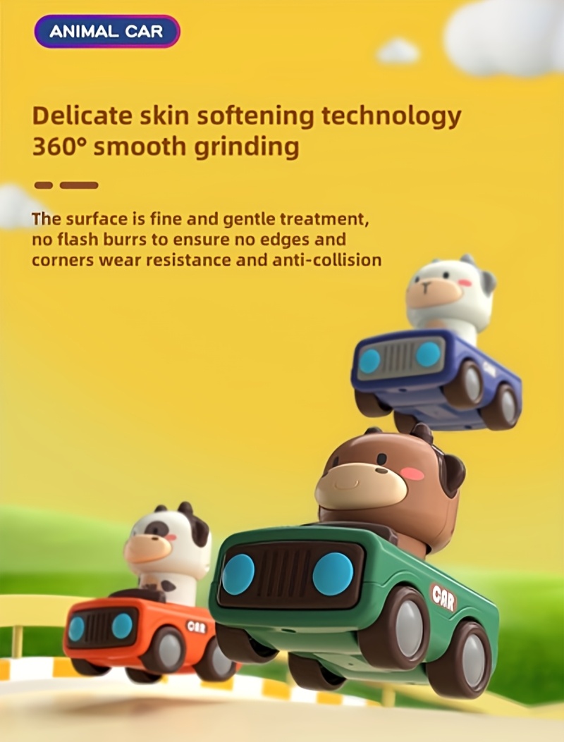 4 Sets Of Push-to-go Inertia Animal Car Children'S Toys, 1-3 Year-old Baby Toy Car, Suitable For Parent-child Interaction Exercise Baby Hand-eye Coordination, Birthday Easter Gifts For Boys And Girls