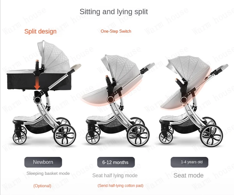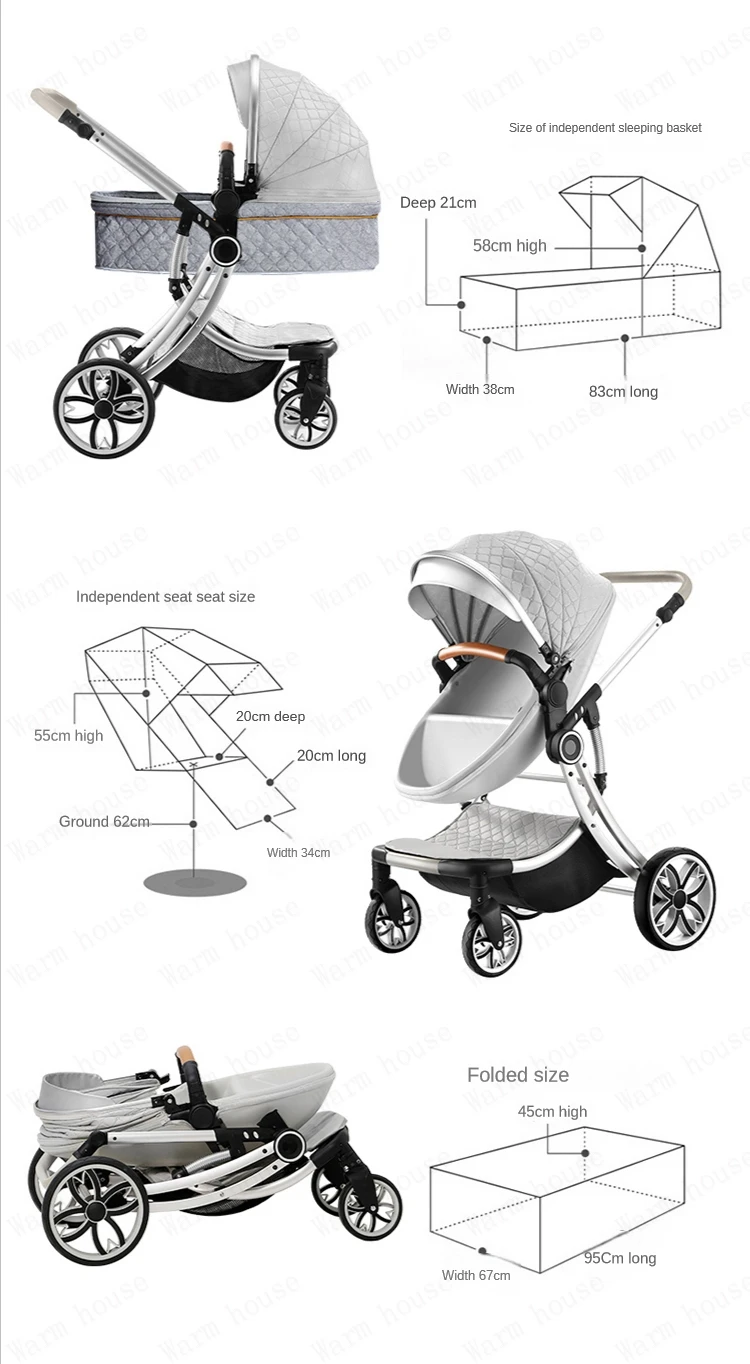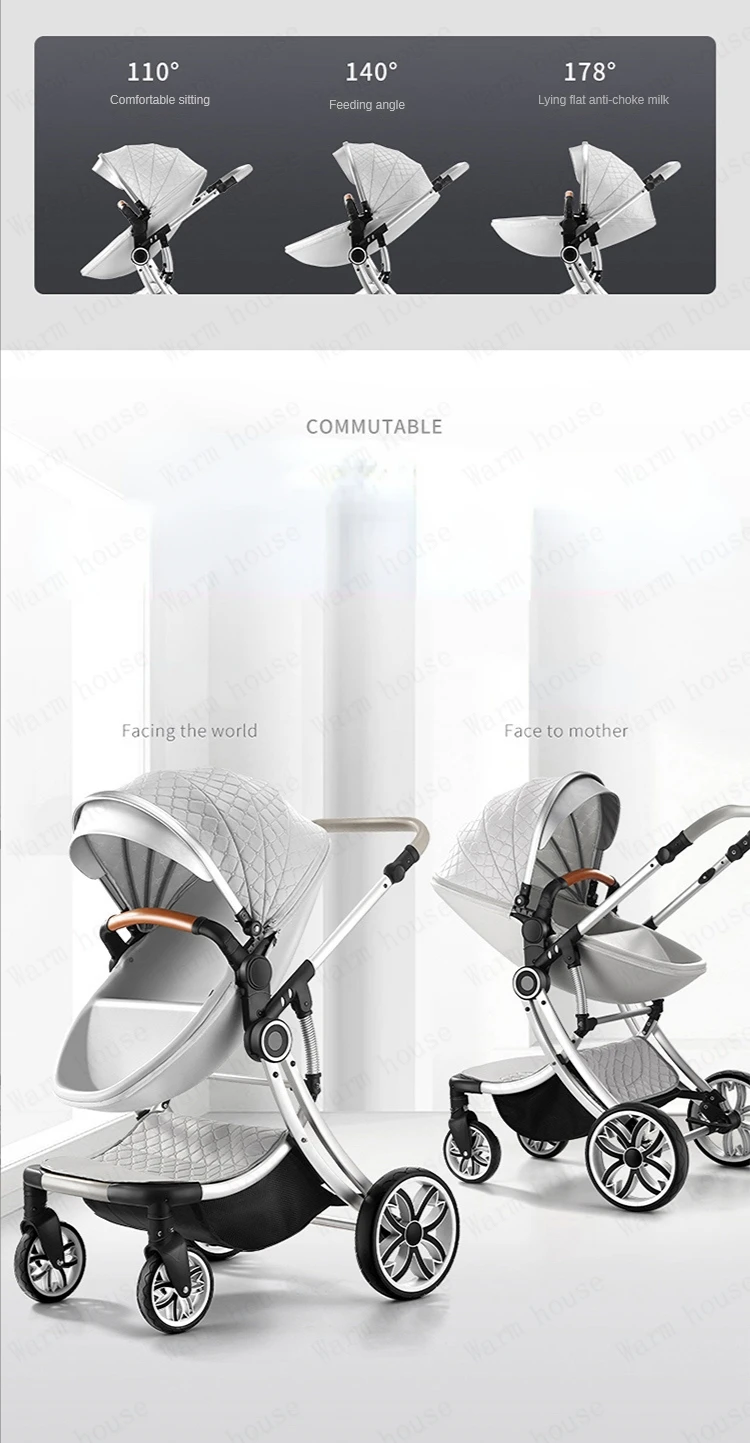 Baby Stroller 2 in 1 Can Sit Can Lie Baby Pram High Landscape bidirectional Baby Pram Shock absorption four wheels stroller