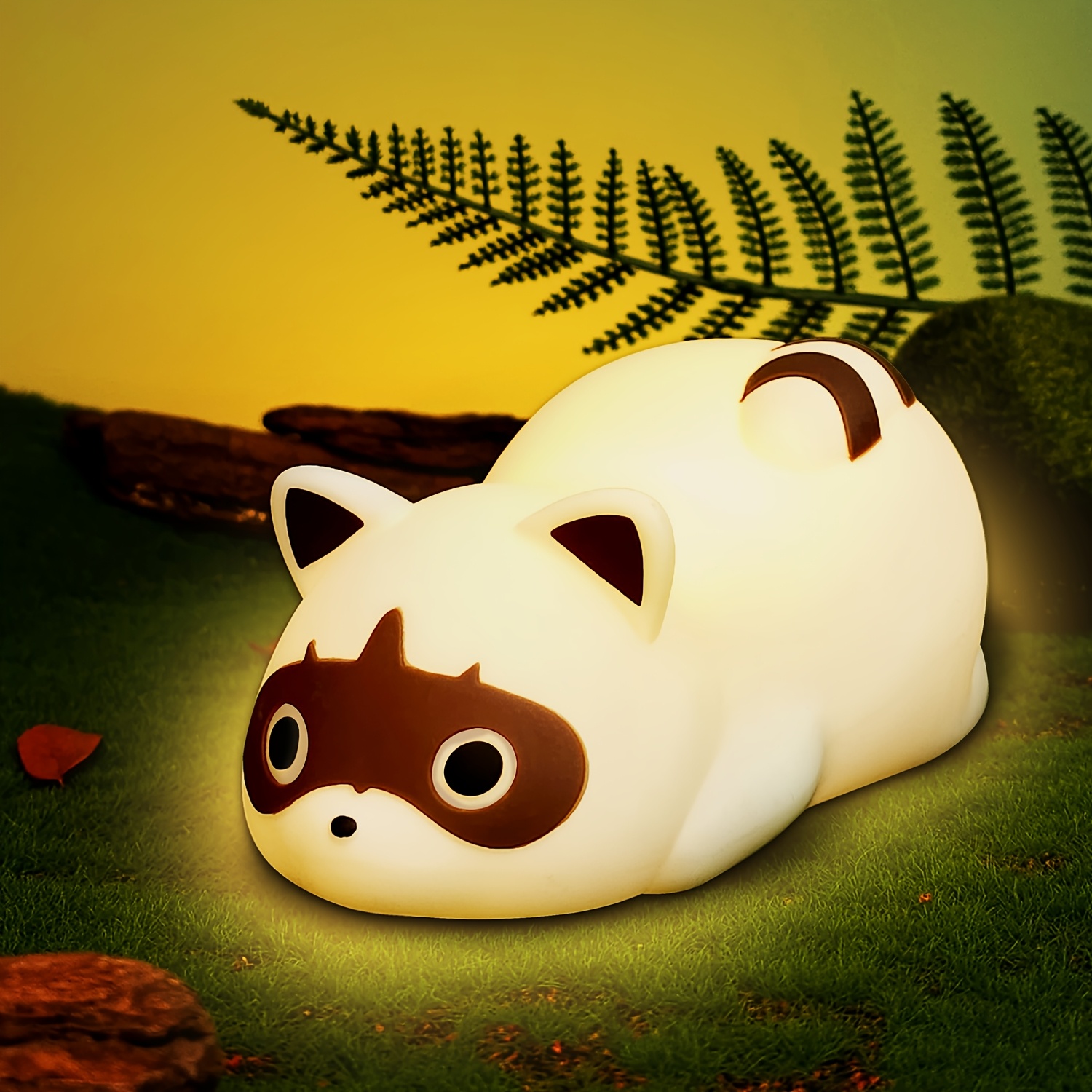 Cute Raccoon Night Light Rechargeable Touch LED Bedside Lamp, Dimmable Table Lamp for Bedroom, Wall & Desk Decor, Kawaii Baby Toy, Aesthetic Gift for Women