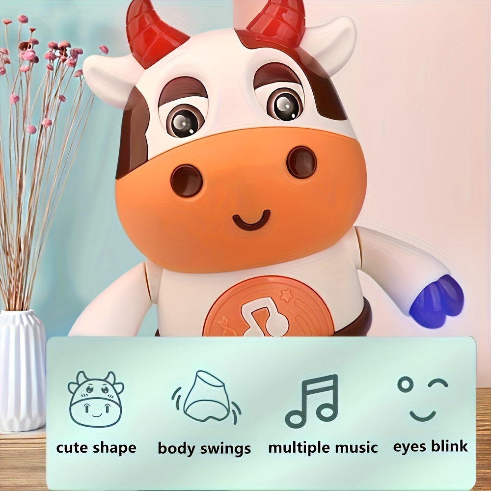 Interactive Dancing Cow Baby Toy with Music and Lights, Educational Early Learning Toy for Toddlers 0-3 Years, Plastic, Child-Safe Soft Glow, Bilingual Features - Gift for Young Children (Batteries Not Included) - from Chines