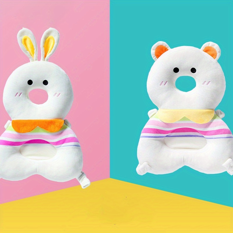 Plush Bunny & Bear Anti-Fall Pillow, Summer Baby Toy, Walking Headrest, Soft Polyester, White, Baby Safety Head Protection Pad