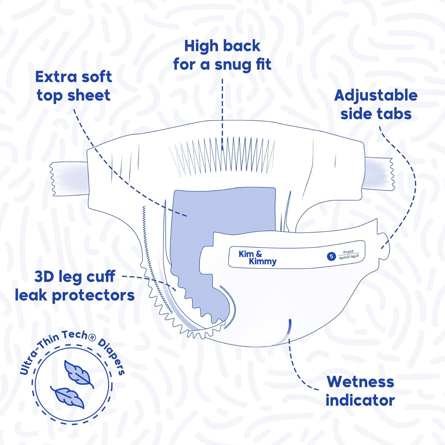 - Ultra-absorbent core (SAP blend)