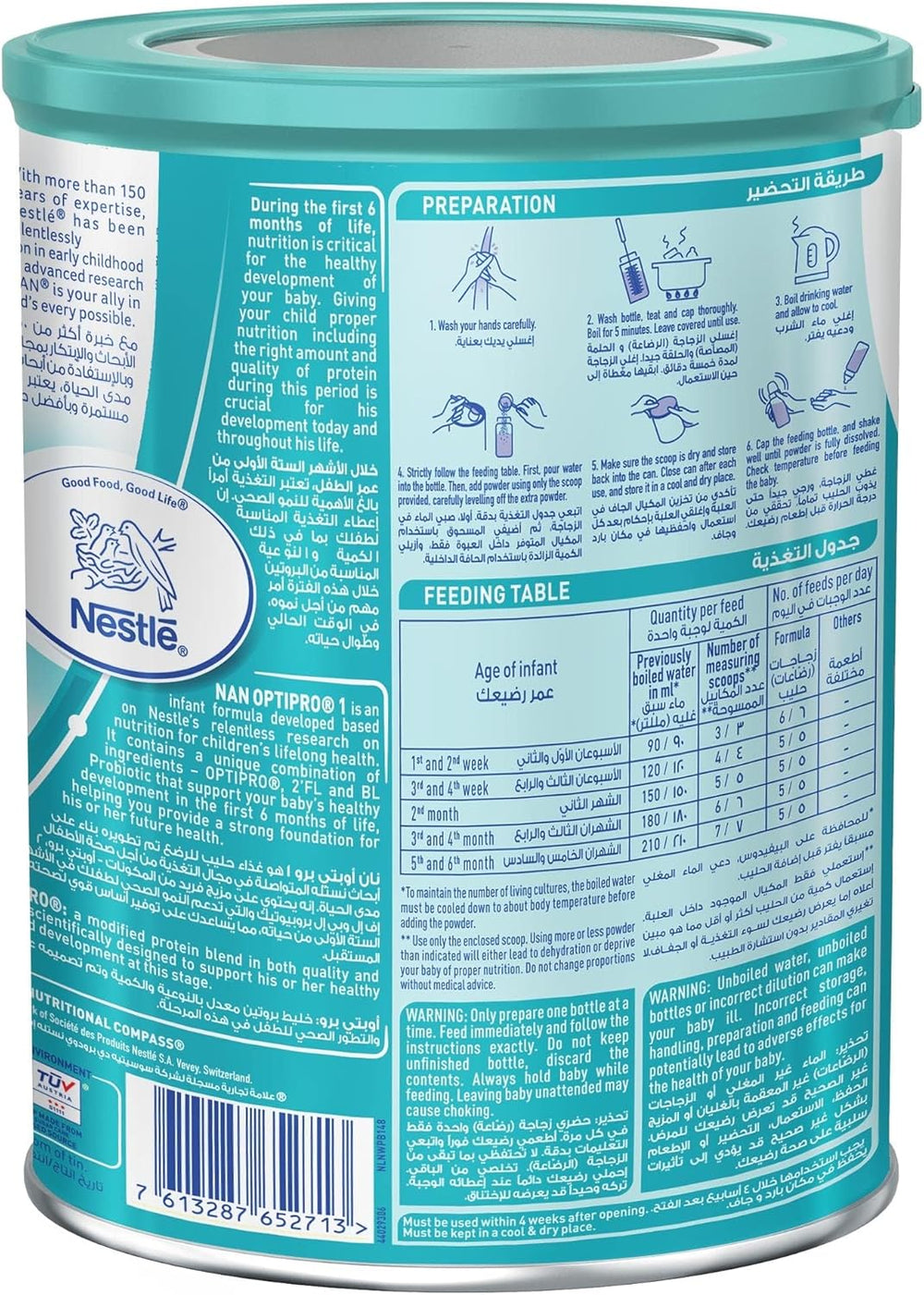 NAN OPTIPRO 1 Starter Infant Formula (0–6 months) is a starter formula designed for healthy infants from birth to six months when they are not breastfed, providing carefully balanced nutrition and an optimized protein blend.